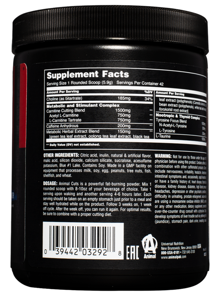 CUTS POWDER 265 GR QUEMADOR DE GRASA NARANJA MANGO – ANIMAL