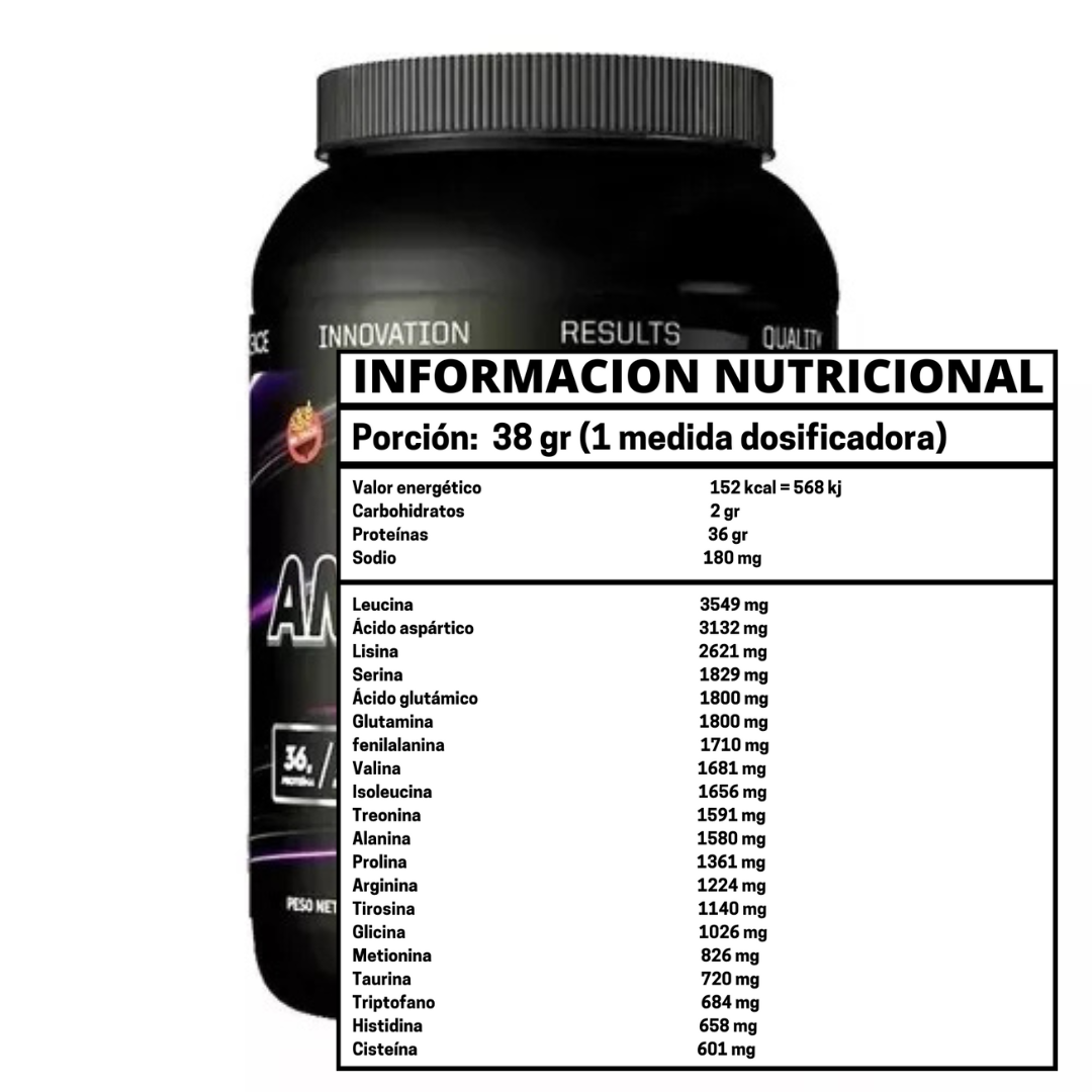 Los aminoácidos son los componentes básicos de las proteínas. Generan la síntesis proteica garantizando el aumento de masa muscular, fuerza y energía. Permiten una rápida recuperación muscular durante el ejercicio intenso y prolongado, aumentando los niveles de energía y la pérdida de grasa del organismo. Las mayores necesidades de aminoácidos de los deportistas, se basan en el estímulo anabólico producido por el ejercicio regular y prolongado, lo que a su vez produce mayor síntesis proteica que se evidencia como mayor crecimiento a nivel muscular.