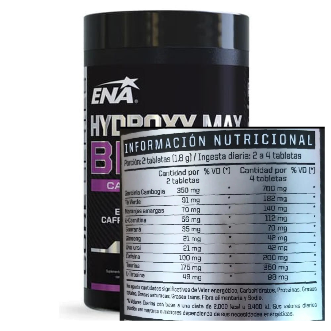 HYDROXY MAX BLACK QUEMADOR CON 200 MG DE CAFEÍNA 120 TABLETAS- ENA