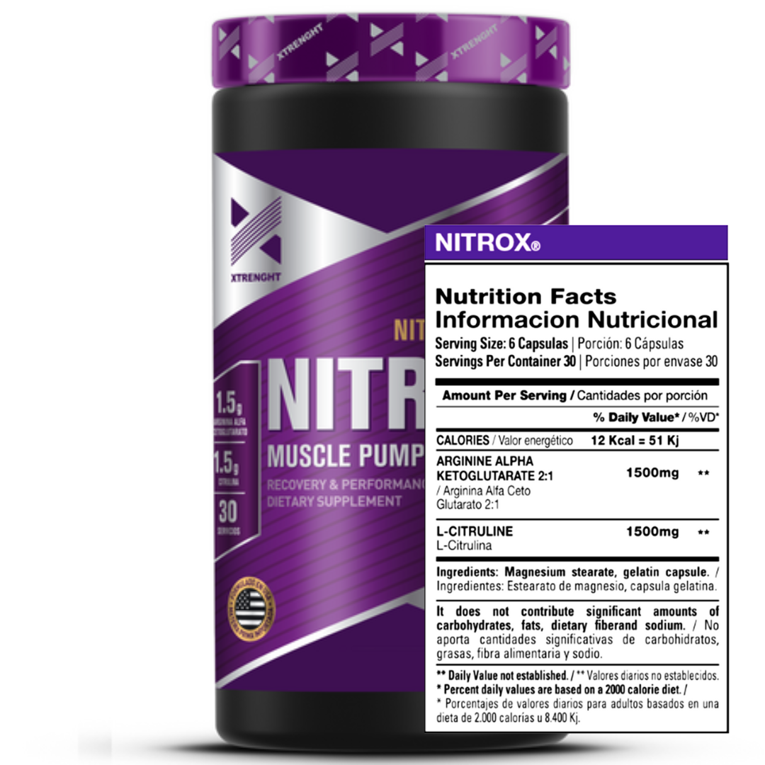 Por eso hemos desarrollado Xtrenght Nitrox, que tiene como ingrediente principal Arginina Alfa Cetoglutarato (AKG), un potente generador de óxido nítrico. Es un suplemento de élite para deportistas de alta rendición y de los más recomendados en el mercado.