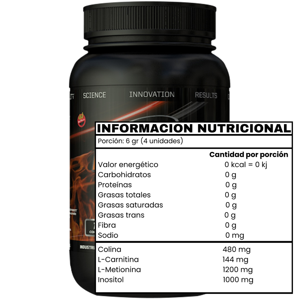 Componentes: La L-Metionina remueve residuos tóxicos del hígado, disminuye las grasas evitando el depósito de las mismas en las arterias e hígado. La Colina previene el depósito de grasa en el hígado. Junto al Inositol y la Betaína son factores lipolíticos que utilizan la grasa para energía y ayudan a conservar las proteínas que irán directamente a nuestros músculos. La L-Carnitina moviliza y transporta las grasas acumuladas en sus lugares de reserva para conducirlas a las células donde se «queman» para liberar energía. Aumenta la resistencia del individuo y reduce el nivel de ácido láctico en los músculos durante el ejercicio.